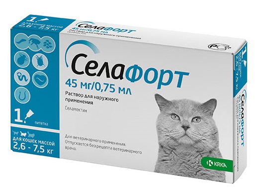 Для уничтожения блох (Ctenocefalides spp.) Селафорт применяют собакам и кошкам однократно, для предупреждения повторной инвазии — один раз в месяц на протяжении всего сезона наибольшей активности насекомых.