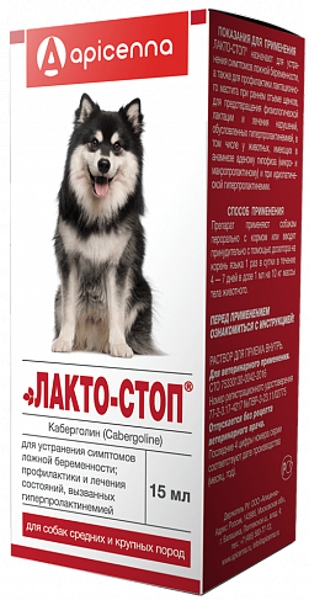Лакто-Стоп (Lacto-Stop ) — раствор для приема внутрь для устранения симптомов ложной беременности, а также для профилактики лактационного мастита при раннем отъеме щенков и котят. По внешнему виду препарат представляет собой прозрачную жидкость от бесцветного до слегка желтоватого цвета.