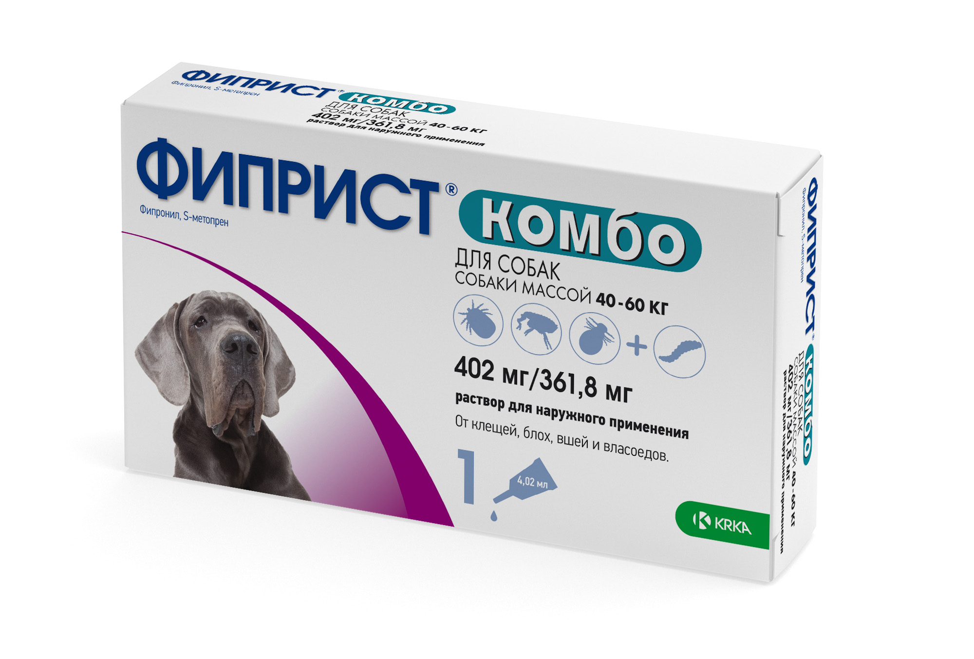 Если вес собаки более 60кг, то для обработки следует использовать 2 пипетки, предназначенные для собак от 20 до 40кг.